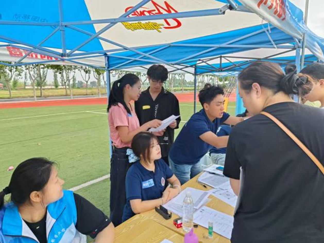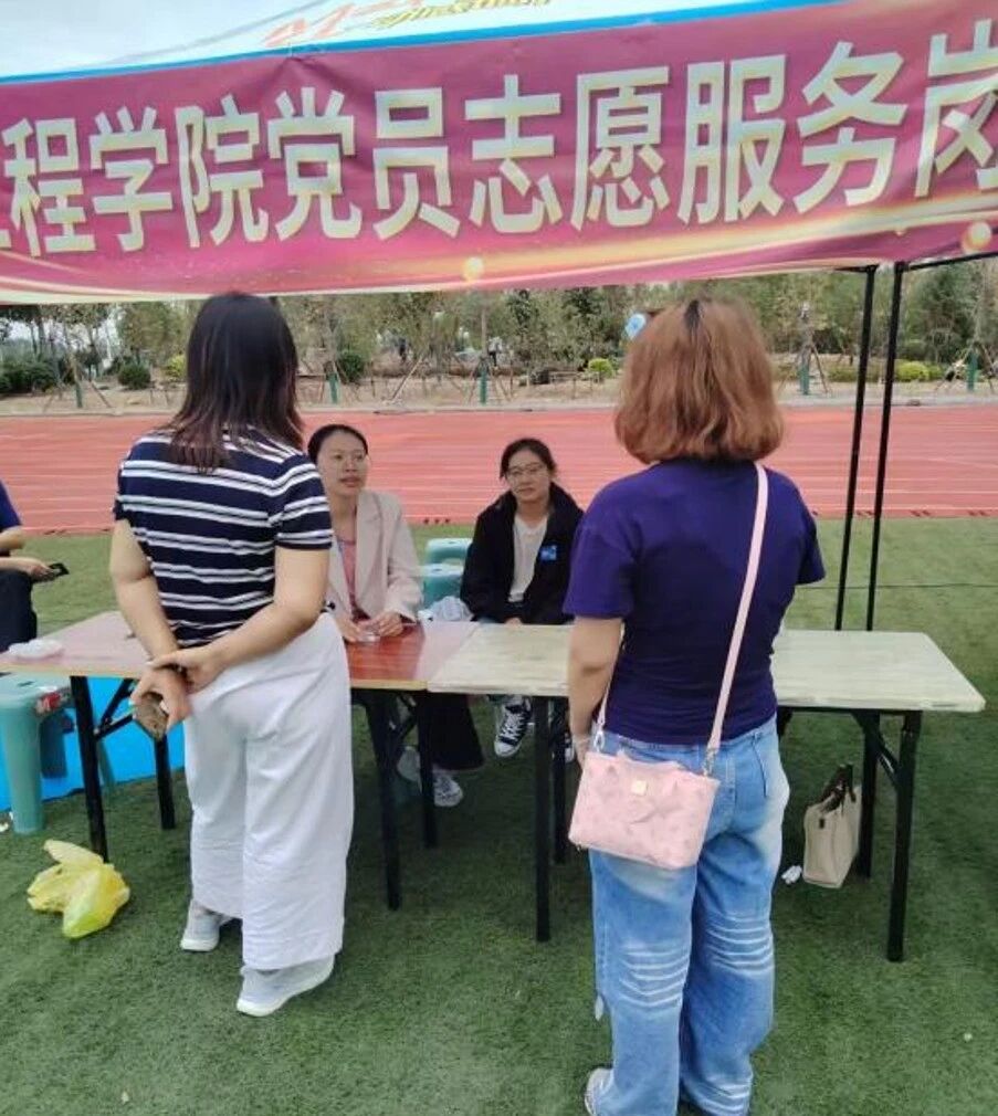 迎新现场,党员教师们统一佩戴党员徽章,亮明身份,以热情的笑脸和饱满的精神状态迎接每一位新生及家长。他们不仅在各接待点高效有序地协助办理入学手续、耐心指引路线、热心帮运行李,更特别注重与新生家长的沟通交流。
