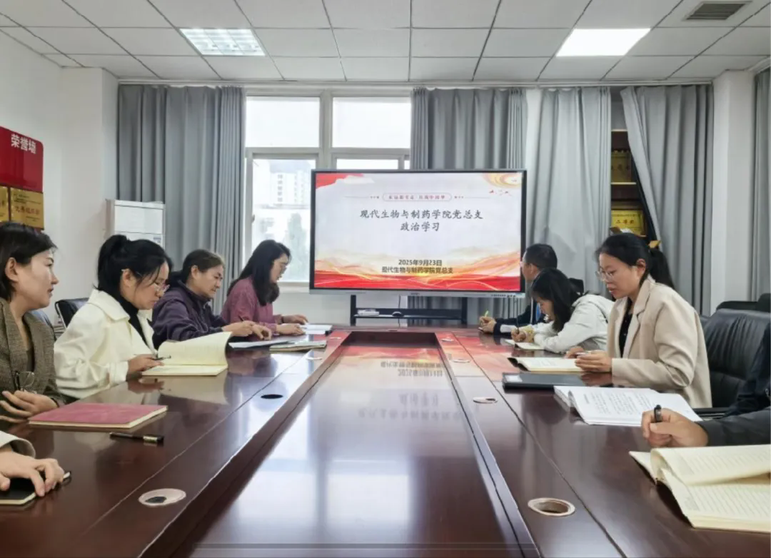 根据学校党委宣传(统战)部安排,现代生物与制药学院党总支于2025年9月23日下午在301党员活动室开展政治理论学习,本次学习由学院党总支副书记白小茗主持,全体教职工参加。