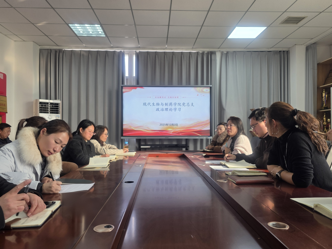 12月2日下午,现代生物与制药学院党总支在办公楼301党员活动室开展政治理论学习,院长王湘妍及全体教职工参加学习。会议由党总支副书记王俊永主持。