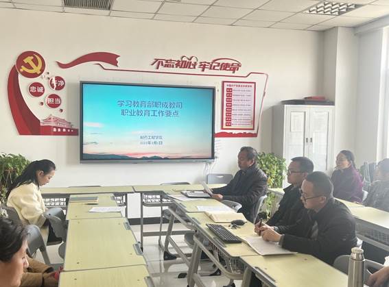永利集团3044欢迎光临于2022年3月1日下午利用业务学习时间,组织全体专兼职教师在党员活动室召开学习“教育部职成教司职业教育工作要点”专题会议。会议由永利集团3044欢迎光临副院长高莉丽主持。