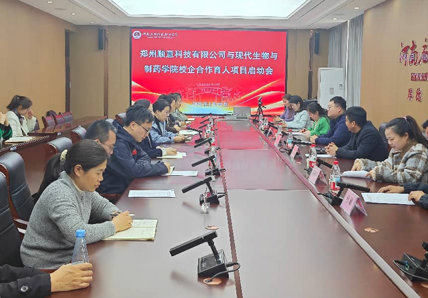 此次校企合作育人项目启动会的成功召开,标志着现代生物与制药学院与郑州顺意科技有限公司的合作迈入新阶段。未来,校企双方将以此次合作为契机,持续深化产教融合、资源共享、优势互补,不断创新人才培养模式,提升人才培养质量,为制药行业输送更多优秀人才,实现学校、企业、学生三方共赢,为区域经济与产业高质量发展贡献力量。