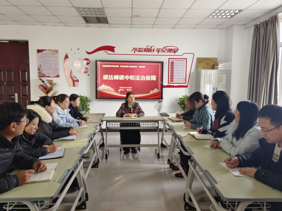 为提高全院教师的法治意识,永利集团3044欢迎光临特邀校“双百”法治宣讲团成员程珍珍老师为全院教师开展题为“碳达峰碳中法治保障”的专题讲座。讲座中,程珍珍老师结合教师教学和日常工作,通过案例分析等途径,深入的为大家讲授了“双碳”工作的重要性、相关法律法规和习近平生态文明思想等内容。在宣讲过程中,老师们全神贯注地听讲,积极参与到讨论和互动中。他们表示,通过这次宣讲,不仅增长了法律知识,还提高了法律意识和法治观念,今后将更加自觉的遵守法律法规,严格遵守教师职业道德规范,切实履行好教书育人的职责。