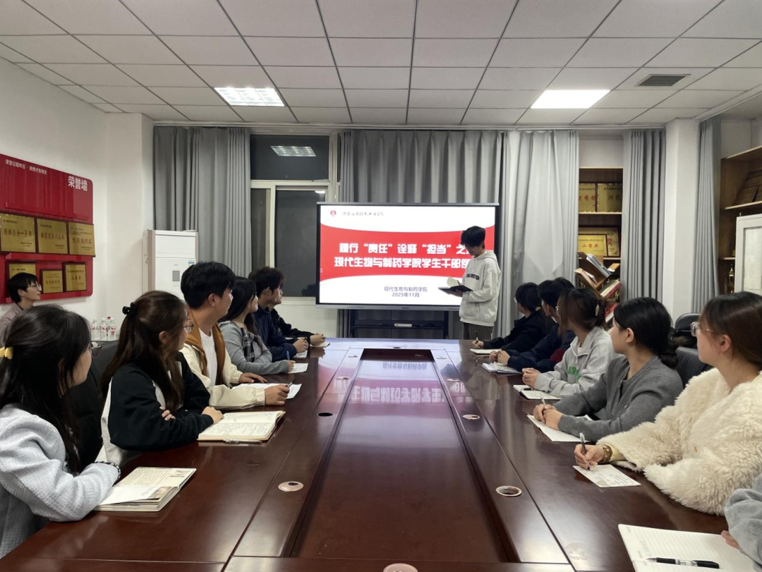 为进一步明确学生会工作方向,提升工作效率与质量,2025年11月3日,现代生物与制药学院在办公楼301召开学生会干部例会。本次会议由学生会主席团成员余生涛主持,各部门干部参加会议。