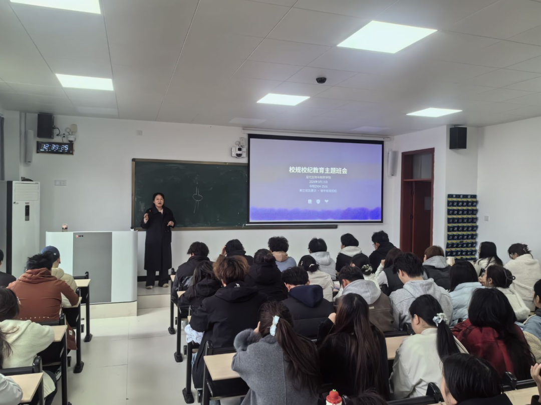 此次班会是学院加强学风建设、落实法治宣传教育的重要举措。下一步,学院将持续把校规校纪教育融入日常管理,常态化开展纪律教育与安全警示,引导学生树立正确规则观,以严谨自律的态度开启新学期,为学院高质量发展与校园和谐稳定奠定坚实基础。